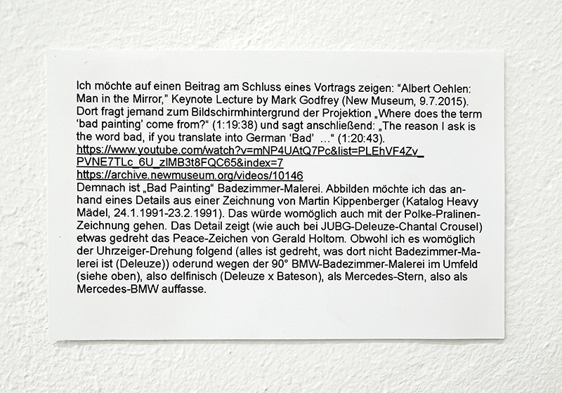 Kein Wald ohne Bäume, heißt es. Aber auch, dass, wer auf den Wald scharf stellt, den einzelnen Baum aus dem Blick verliert, von Blatt, Ast, Rinde oder dem darunter siedelnden Käfer ganz zu schweigen. Was sich stellt, ist also die Frage nach dem Verhältnis zwischen dem Ganzen und dem Teil, wobei der Fokus auf dem Detail liegen soll. Eine Wechselbeziehung – pars pro toto (oder auch contra) – ist in einigen Beiträgen spürbar, wenn eine flächenmäßig kleine Stelle das gesamte Bild konterkariert oder schlüssig zusammenfasst. Der Shortcut wird zum Summary. Ein Detail zur verselbstständigten Einheit, das die Gesamtansicht schnell vergessen hat. Oder es wird zum Kontrapunkt, der wie ein Grippevirus den Bildorganismus zu spannungsgeladenen Abwehrreaktionen treibt. Kritiker von David Foster Wallace behaupten, in seinen Werken gäbe es keine Seite ohne brillante, herausragende einzelne Sätze, aber so gut wie keine einzige großartige Seite. Als Ausstellung funktioniert summe & teile wie ein Schwenk über dreißig Paarungen, die zwischen Zoom und Totale pendeln gehen – jeweils ausgewählt von Autorinnen, Künstlern, Kuratorinnen, Sammlern und Galeristinnen. Details können aus sogenannten Meisterwerken – etwa von Artemisia Gentileschi und Henri Matisse – stammen oder sonst üblicherweise im Schiffsbau funktionale Verwendung finden. Es mögen alte, sozusagen „ewige“ Lieblingsstellen sein, wie sie einem in einem Bild oder an einem Objekt dennoch immer wieder neu ins Auge stechen. Vielleicht auch, weil sie widerständig, opak und auf sich selbst bezogen bleiben: Details, die einem nicht aus dem Kopf gehen wollen. Die sich wie eine Art persönliches meme – oder ein Fetisch – nachhaltig in der Erinnerung/im Unbewussten festgesetzt haben, um sich unerwartet bemerkbar zu machen. Ein anderes Beispiel für das aktuelle Interesse an Bilddetails liefert ein finanzielles Beteiligungsmodell des Investors Thomas Kaplan. Hier werden quadratzentimeter-große Bildanteile von Rembrandt-Bildern als shares per Bitcoin angeboten. Also viele Möglichkeiten, wie man sich im Ganzen und im Detail auch schön verlieren kann. Das möchte diese Ausstellung zeigen und trotzdem den Blick auf das Wesentliche, sprich, auch auf das Übersehene richten. schon ist ein temporärer Projektraum organisiert von Hans-Jürgen Hafner & Gunter Reski, unterstützt von Christian Schwarzwald.